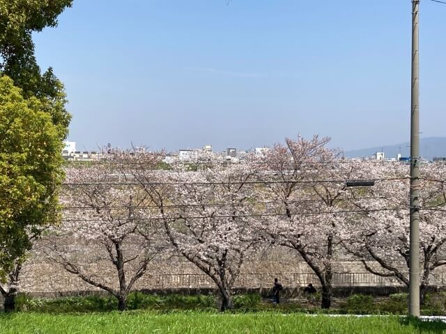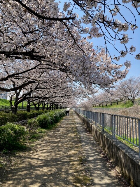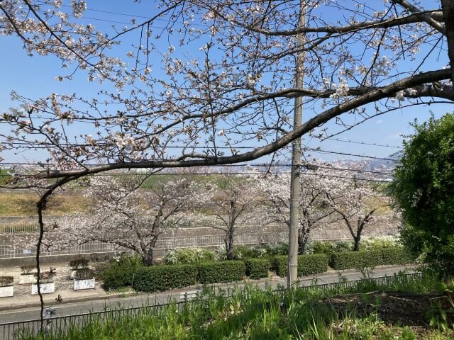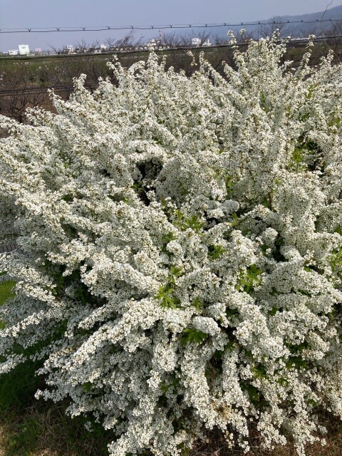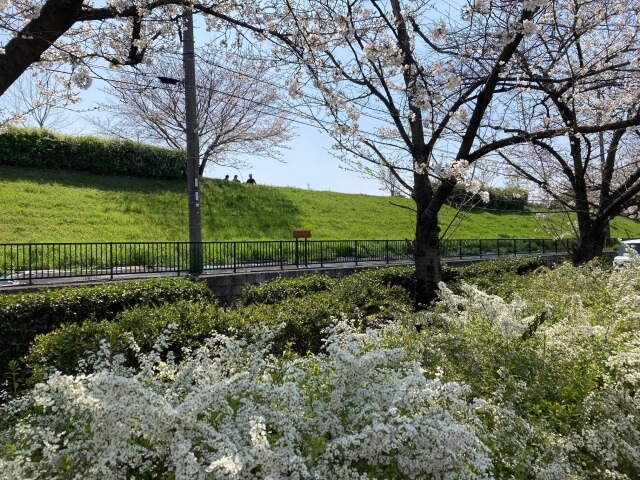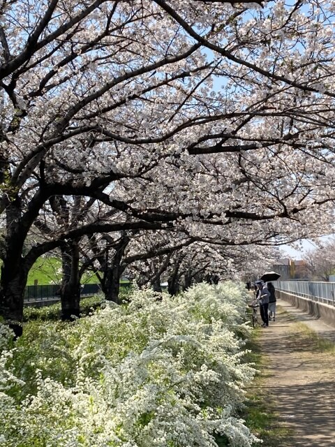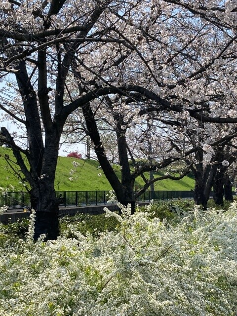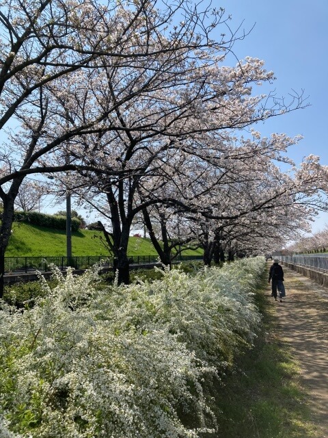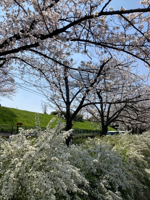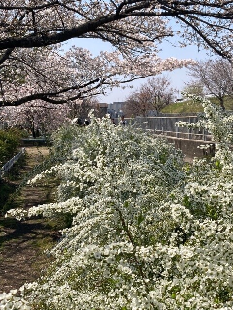 起き上がって、大和川の方を見ると、どうやら下は桜と雪柳、両方咲いているみたいです😮