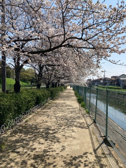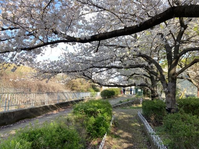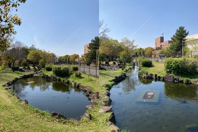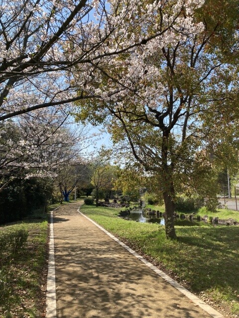 「大井みらいセンター」の正門側には、桜と人工の小川もあるので、そこにも足をのばしてみました🙂