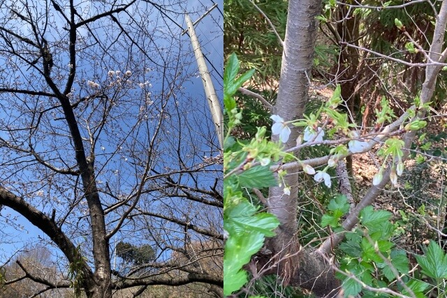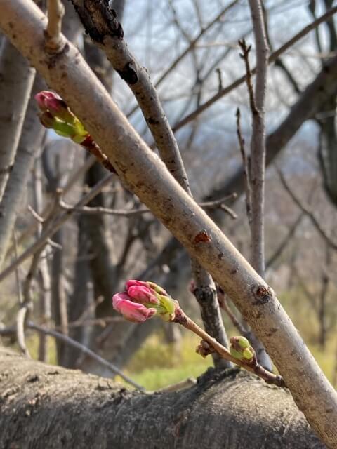まずは水仙郷へ、道中の桜の木にも、時々咲いているものがありました🙂