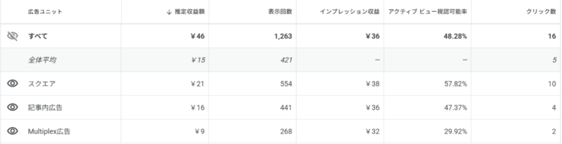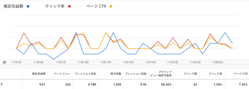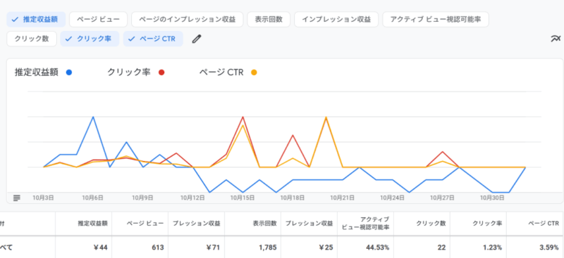 アドセンスからの収益に関して言えば、0ではありませんが、ホンマにちょびっとです😅