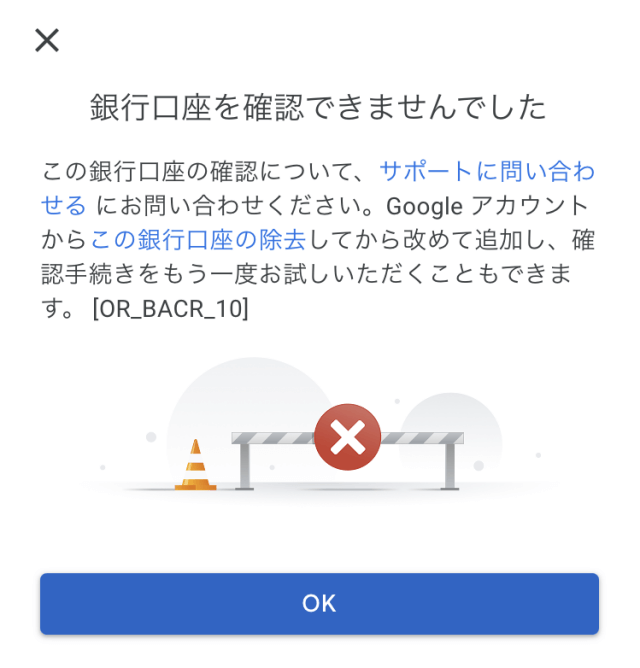 仕方しかたないので、一度銀行情報を削除さくじょして同じ情報をもう一度入力、しかし状況は変わらず😞