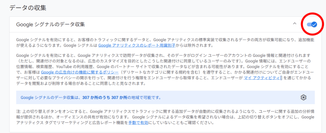 Googleシグナルのデータ収集が