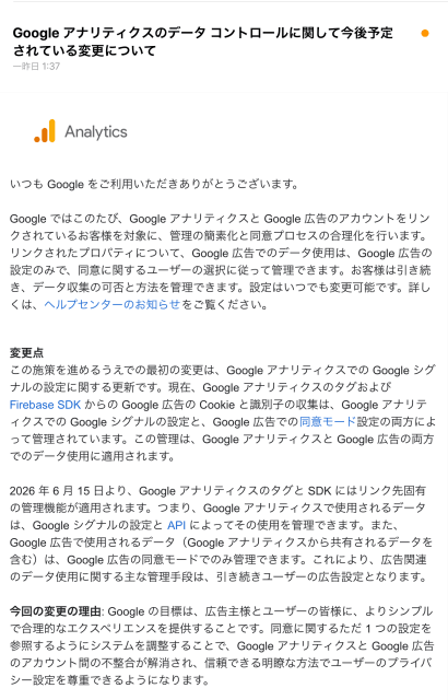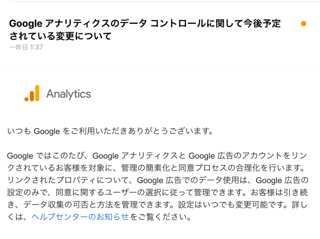 アナリティクスから以下のタイトルのメールが来ました