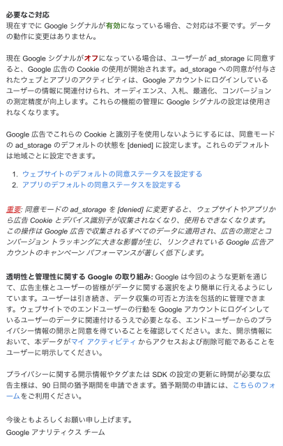 「Google アナリティクスのデータ コントロールに関して今後予定されている変更について」