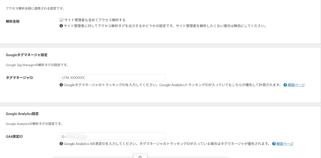 •Google Analytics → GA4 IDをCocoonに直入れ 👍